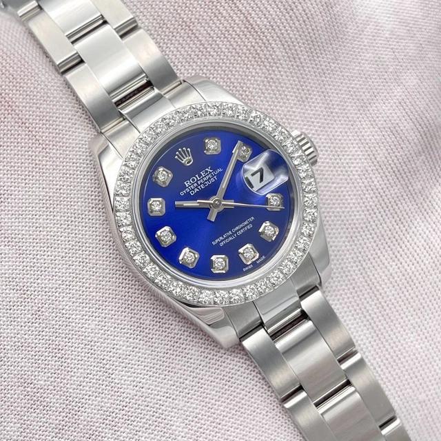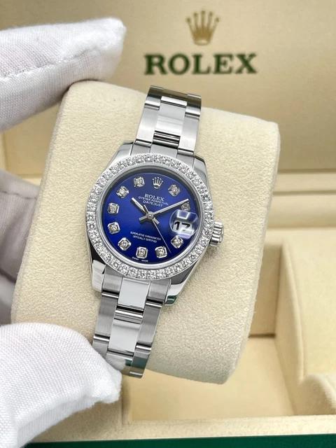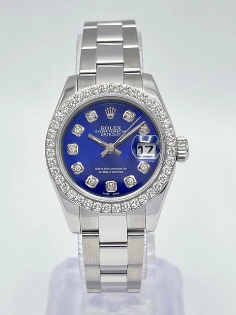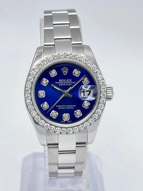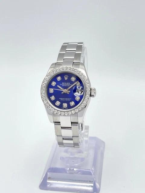 Rolex Datejust Ladies 26mm 179160 Cadran Diamant Bleu et Lunette Diamant Boîte Papiers